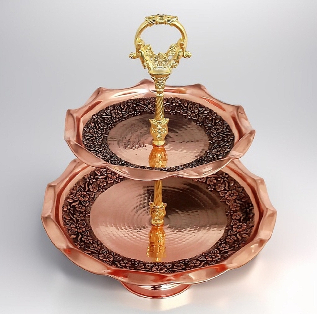 شیرینی خوری مسی دوطبقه رزگل