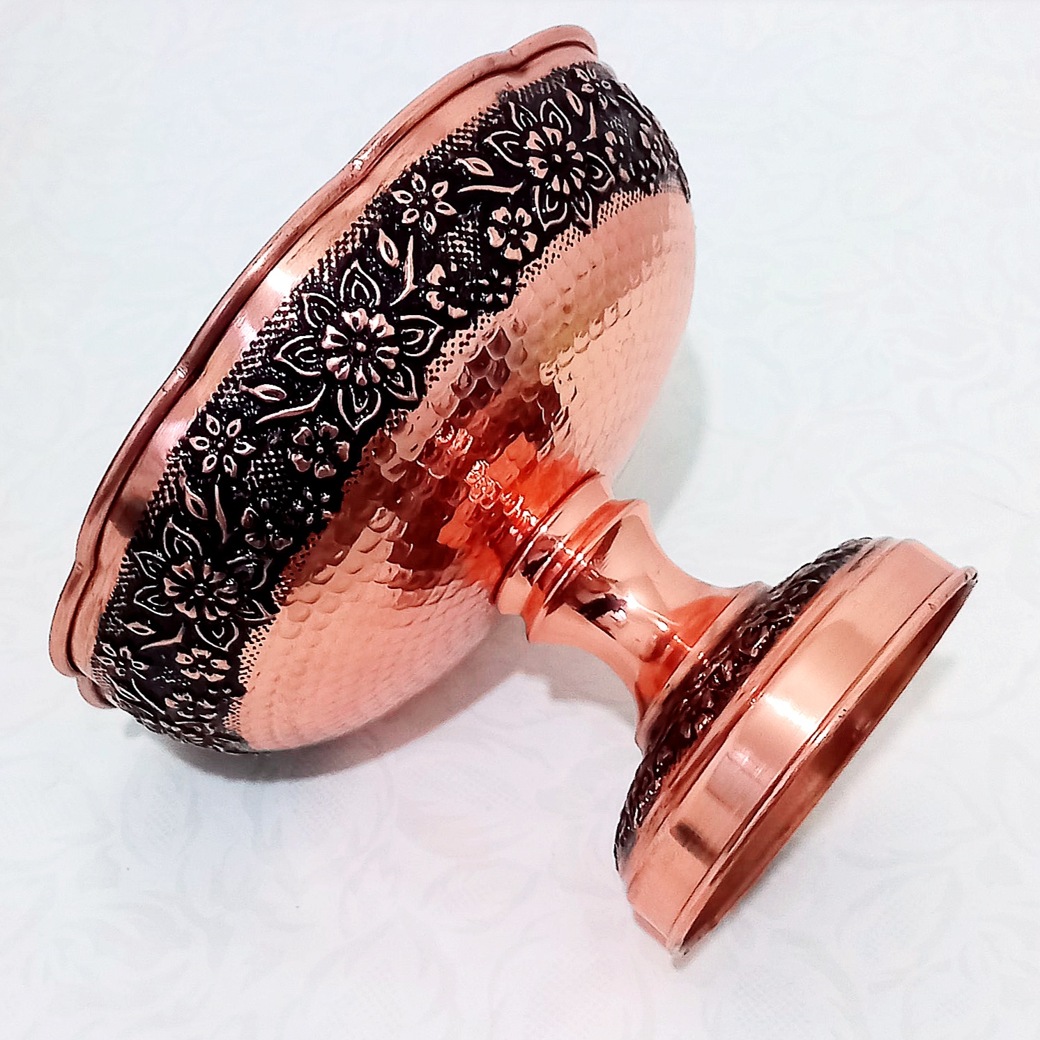 شکلاتخوری مسی رزگل با طراحی ظریف و نقشکوبی سنتی، ترکیبی از هنر اصیل ایرانی و کاربری مدرن است. سطح درخشان مس با پرداخت حرفهای، جلوهای گرم و لوکس به میز پذیرایی میبخشد. این محصول علاوه بر نگهداری شکلات و شیرینی، بهعنوان یک المان دکوراتیو نیز زیبایی خاصی به فضای خانه یا محل کار اضافه میکند. انتخابی مناسب برای هدیهای ارزشمند و ماندگار.